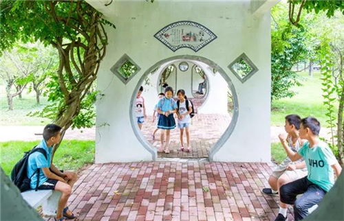 孩子们在孝廉文化园内栖息玩耍,感受着孝道文化的气息。