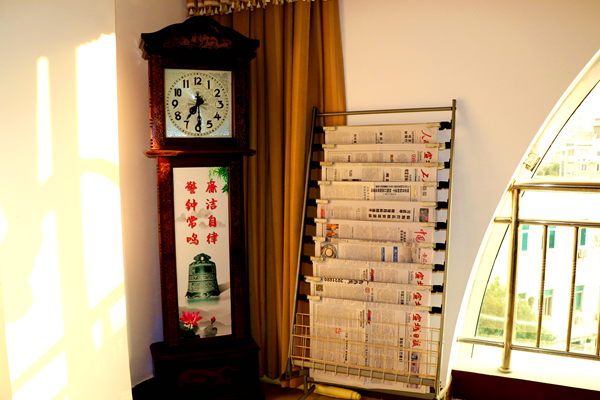 机关单位的一角,一座略显古朴的座钟屹立在那里,钟座上的“廉洁自律、警钟长鸣”与之相得益彰。每每钟声响起,周边的党员干部都会静下心细细聆听这“廉政梵音”。(组稿:李超)