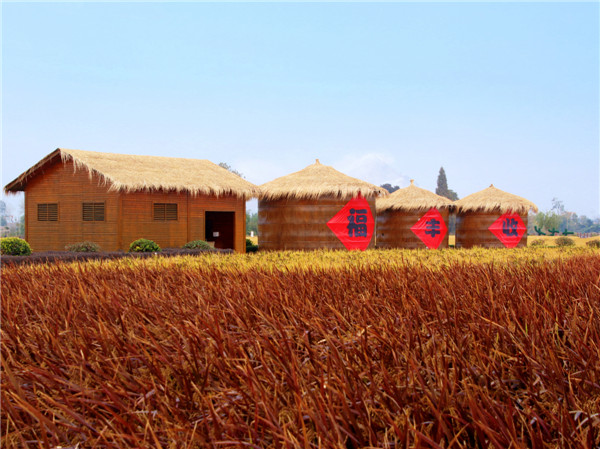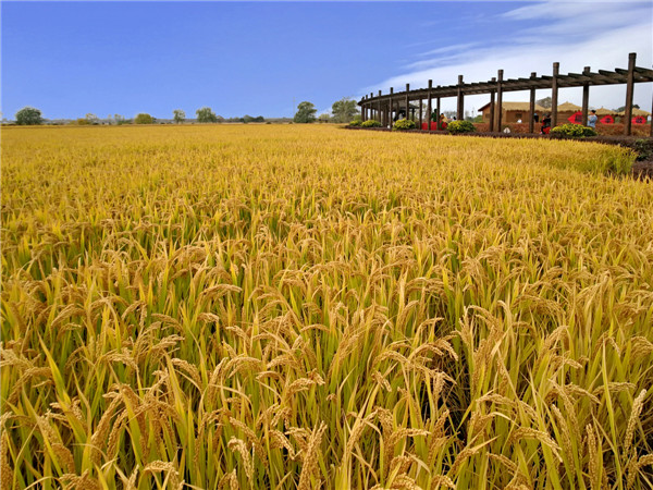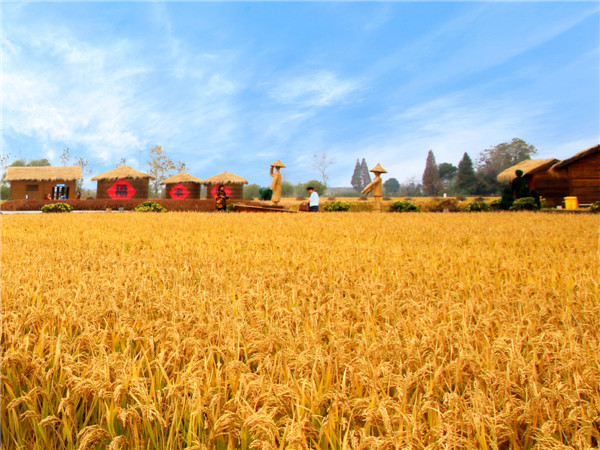 千层稻浪万重山,沉醉金秋绽笑颜。