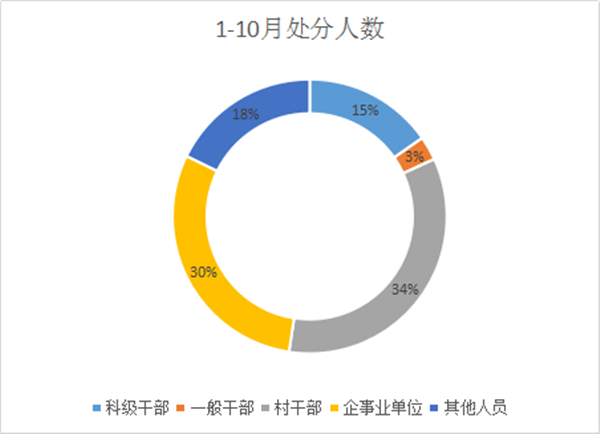 今年1-10月,泗县纪委监委处置问题线索605件,谈话函询46件,立案250件,结案227件。处分248人,其中党纪处分190人次,政务处分71人次,受双重处分13人次,移送检察机关8人,刑事处理26人;受处分人员中,科级干部38人,一般干部7人,村干部85人,企事业单位74人,其他人员44人。
