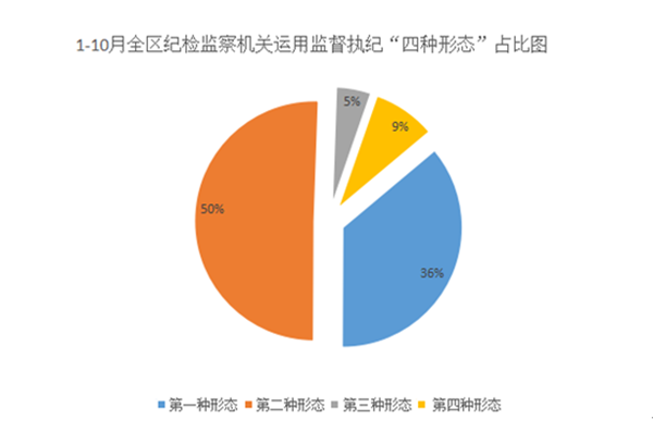 运用监督执纪“四种形态”处理 105人次。其中,第一种形态38人次,占“四种形态”处理总人次的36%;第二种形态53人次,占50 %;第三种形态 5人次,占5%;第四种形态 9人次,占比9%。