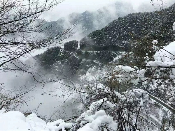 “终南阴岭秀,积雪浮云端。”冬雪过后,银白覆满大地,天地连成一线。本已枯萎的树枝上开满了束束“银花”,为这世界渲染了几分童话般的色彩。