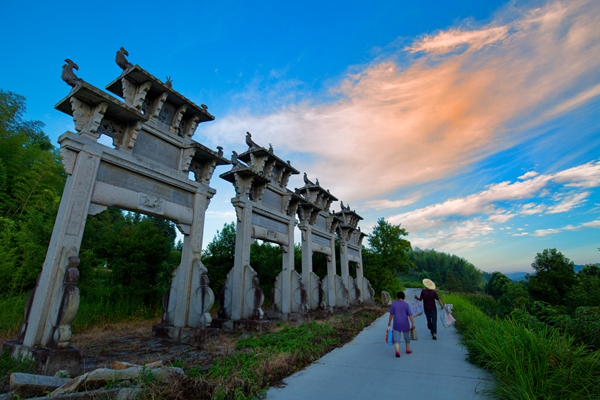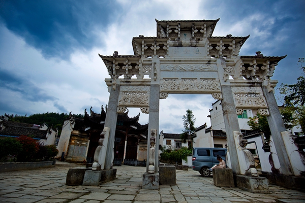 村口的牌坊群如钢铁战士般巍然屹立,虽经历百年风霜雨雪,依然挺拔坚韧,向来往的人们诉说着过去的故事。