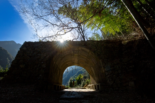 没有复杂的雕工,没有繁华的装饰,用最原始的堆砌把小径隔成了两段,在秋阳的照耀下,焕发出别样的魅力。