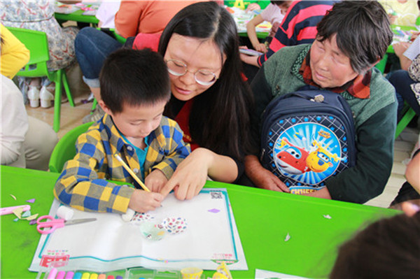 党员志愿者陪伴孩子们一起绘制画作送给自己的妈妈,表达出心中的敬爱之情,帮助他们从小树立孝敬父母、关爱父母的感恩意识,扣好“人生第一粒扣子”。