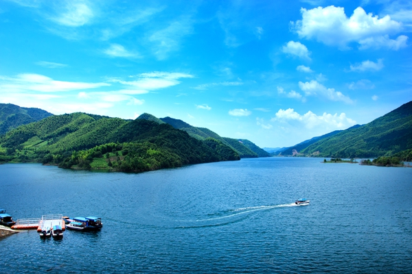 青龙湾是一座国家级森林公园,这里蓄水9.41亿立方米,湖面延绵34平方千米,有岛屿38个,植被覆盖率达77.5%,拥有植物483种、动物215种,气候宜人、景色迷人。