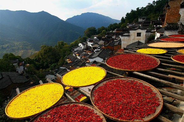 古村临苍山,农户晒冬忙。