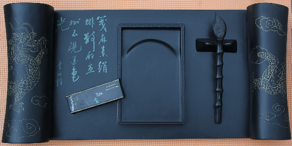 宣砚石质坚密柔腻、温润如玉,黑亮如漆、发墨光润,涩不留笔、滑不拒墨,素来为文人墨客所钟爱。“笺麻素绢排数厢,宣州石砚墨色光”,诗仙李白在《草书歌行》中表达了对宣砚的赞颂。