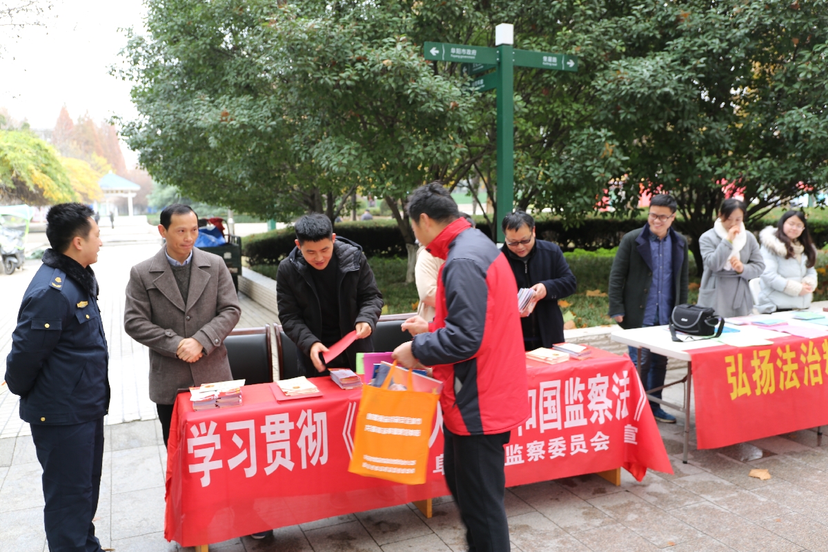 12月4日上午,阜阳市纪委监委结合第五个国家宪法日主题宣传,在清河广场开展学习贯彻《中华人民共和国监察法》(以下简称《监察法》)普法宣传。