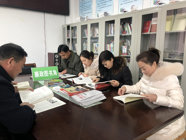 “廉政读书角”收藏各种廉政书籍、杂志、报刊等不少于150册(种),内容主要包括习近平新时代中国特色社会主义思想、社会主义核心价值观、党纪党规、领导干部廉洁从政、依法行政、先进基层党组织、优秀共产党员事迹汇编等,报刊主要是《江淮风纪》《中国纪检监察》《中国纪检监察报》等。各村和社区安排专人精心布置“廉政读书角”,集中在一个区域,设置醒目标志,制定阅读登记制度。