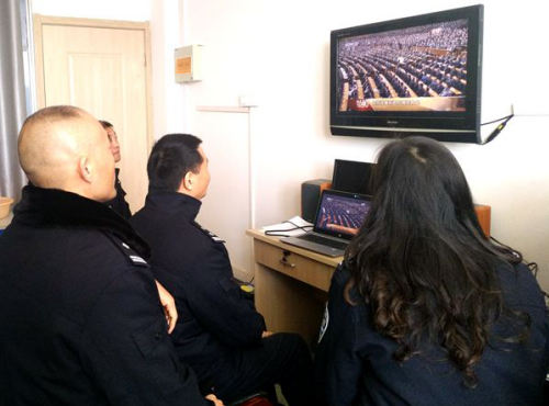 南陵县纪委监委派驻县公安局纪检监察组同志集中收看大会盛况
