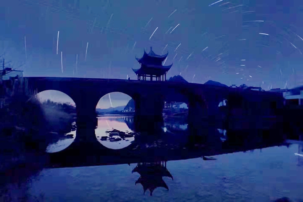 小镇的夜美、水美、桥也美。万籁俱静的夜,天地之间广阔无垠,唯有潺潺的流水奏着叮咚的乐曲。喧嚣了一整天的古镇也开始渐渐休眠,为新的一天展现魅力积蓄宝贵的力量。