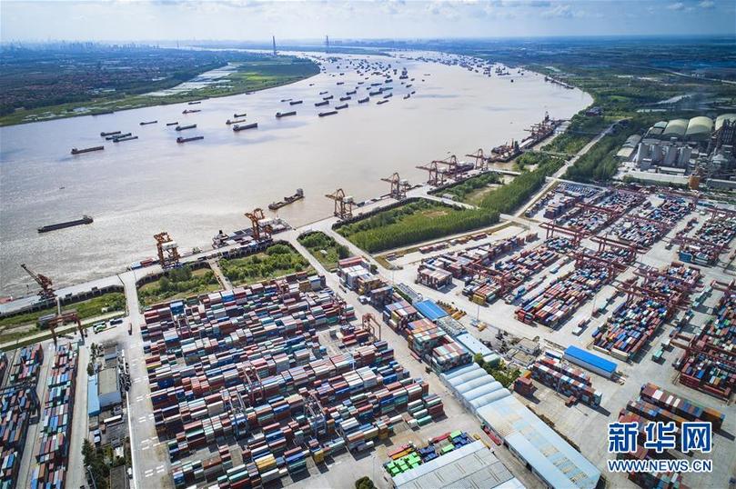 这是武汉长江中游航运中心核心港阳逻港(2018年8月13日无人机拍摄)。新华社记者 肖艺九 摄