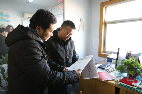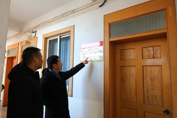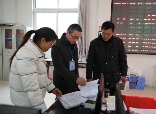 督查组深入各县直单位查看值班值守情况,图为在县教体局认真核查工作人员外出登记表