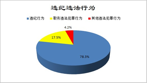 在检举控告类信访举报件中,违纪行为130件,占78.3%;职务违法犯罪行为29件,占17.5%;其他违法犯罪行为7件,占4.2%。