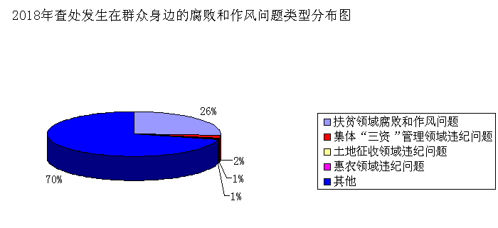 紧抓发生在群众身边的腐败和作风问题。2018年,全市共查处发生在群众身边的腐败和作风问题1855起,同比下降17.08%;处理2205人,同比下降23.49%;给予党纪政务处分1481人,同比增长18.96%。其中扶贫领域查处问题451起,处理618人,给予党纪政务处分283人,组织处理335人。从统计数据来看,查处数量下降幅度较大,反映出全面从严治党不断向基层延伸成效彰显;党纪政务处分人数同比增长,体现了全市纪检监察机关不松劲、不停步、再出发,持续保持高压态势。查处数量与党纪政务处分人数一降一升,一方面印证了基层腐败存量得到削减、增量得到遏制,另一方面也说明群众身边的腐败与作风问题形势依然严峻复杂。