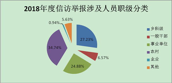 从涉及人员职级来看,乡科级58件,一般干部14件,事业单位53件,农村74件,企业2件,其他12件。