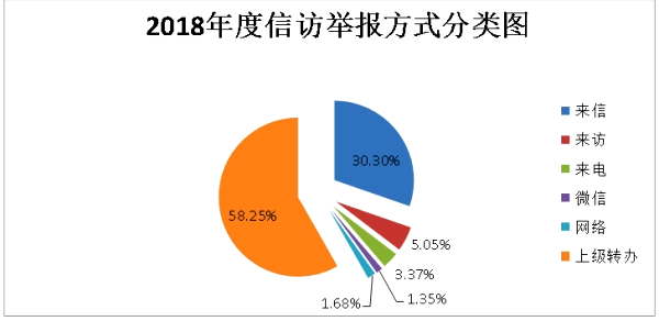 从信访举报方式看,来信90件,来访15件,电话举报10件,微信举报4件,网络举报5件,上级转办173件。