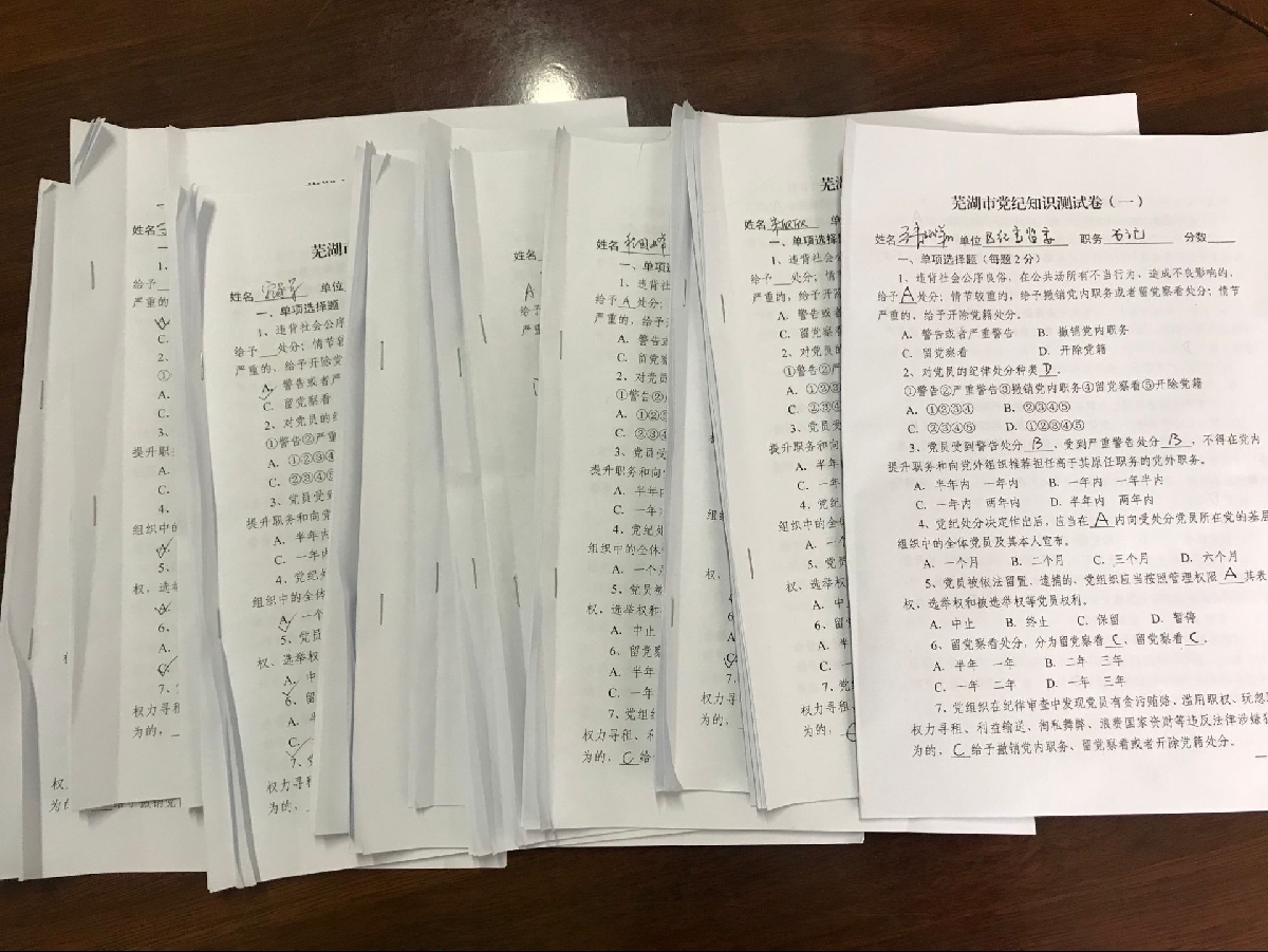 2019年1月10日,根据市纪委的统一部署,弋江区在全区各级党政机关及国有企事业单位党员干部和公职人员中集中开展了党纪知识集中测试。区纪委监委统筹安排、精心组织、专人负责,确保测试工作落到实处,切实通过测试以考促学、以学促用。