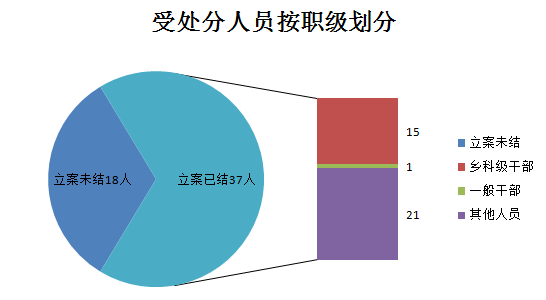 始终保持反腐败高压态势,共立案审查55人,结案37人,其中;乡科级干部15人,一般干部1人,其他人员(农村党员,企事业干部)21人。
