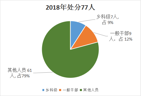 持续保持惩治腐败高压态势,坚持无禁区、全覆盖、零容忍。2018年全区纪检监察机关共结案81件,给予党纪政务处分77人(受党纪政务双重处分2人),其中乡科级干部7人,一般干部9人,其他人员61人。