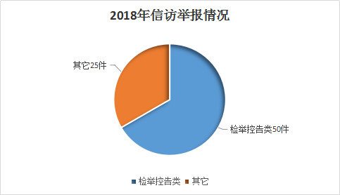 纪检监察体制改革后,纪检监察机关受理信访举报的事项更多、范围更大。2018年全区纪检监察机关共接受信访举报75件(次),同比增长36.4%。其中检举控告类50件(次),占信访总量的66.7%,同比增长38.9%。