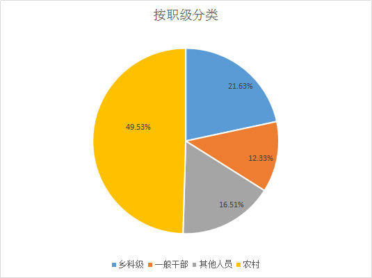 从信访举报件受理职级来看,在430件(次)检举控告类信访举报件中,乡科级93件,占21.63%;一般干部53件,占12.33%;其他人员71件,占16.51%;农村213件,占49.53%。 (宣城市纪委监委)
