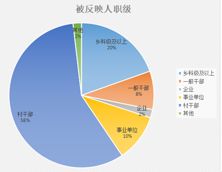 从被反映对象职级看。在检举控告类1393件中,乡科级及以上273件,一般干部119件,一般企业26件,事业单位147件,农村地区802件,其他26件。