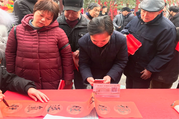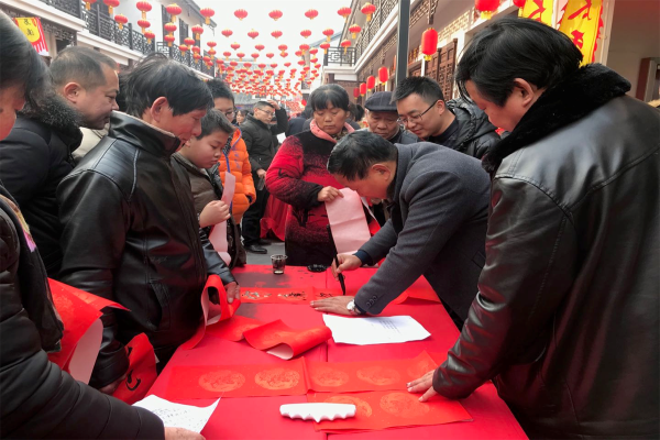 1月20日,正值当涂县第二届年货嘉年华活动在太平府文化园开幕之际,当涂县纪委监委在活动现场举行迎新春送廉政春联活动,邀请书法家在清源门前书写春联,并免费赠送给群众。