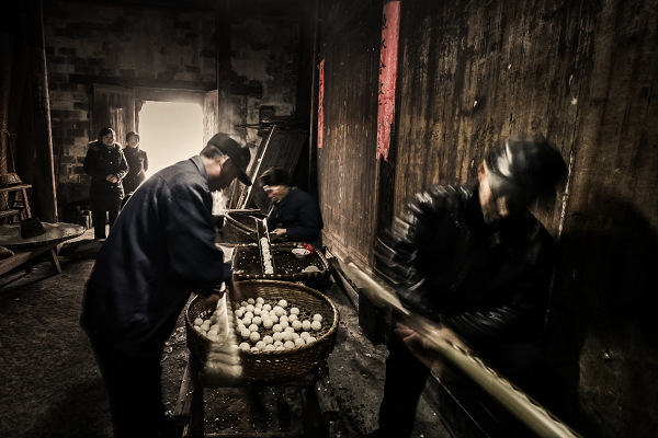 欢团完全成型后,皖南人家还有一个风俗即“抛欢团”,寓意把幸福美满、欢乐团圆抛洒开去,希望父老乡亲都能欢欢喜喜、团团圆圆过新年。抛洒完还得再吃上一个,口味脆甜可口,新的一年里幸福的生活一定比蜜甜。(图/卞兆明 文/刘芳)
