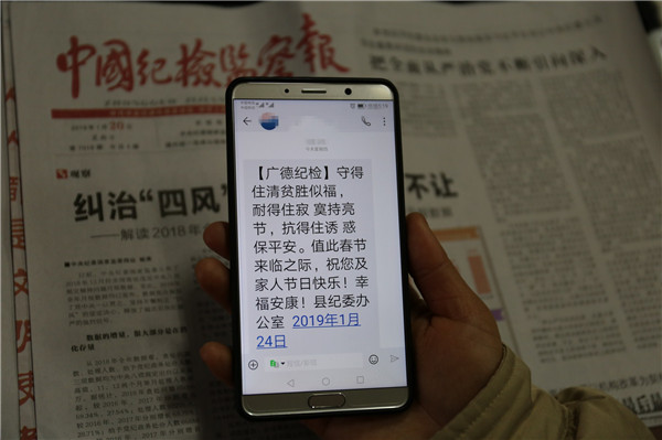 “守得住清贫胜似福……”又到年关,县纪委监委的廉政提醒短信如约而至,督促广大党员干部做到心中有纪律、行为守规矩。