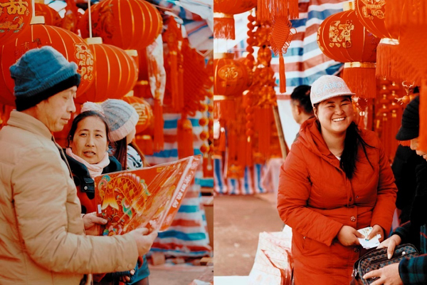 年廿九买春联,意头喜庆进家门。春节前大街小巷里,常会摆出挂满春联和红灯笼的小铺子,放眼望过去红红火火,年味十足,吸引不少老百姓前来选购。(图/文 佘有胜)