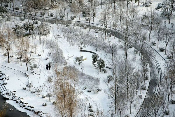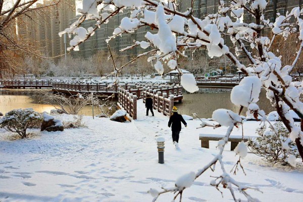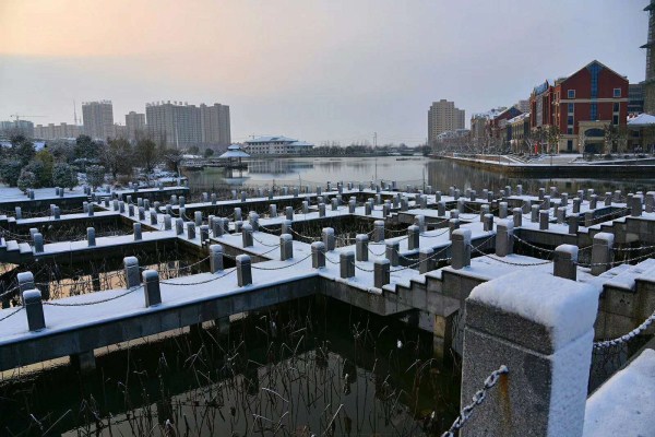 护城河畔,老人跳广场舞、青年男女约会的好去处,也已是“北国风光,千里冰封,万里雪飘”了。