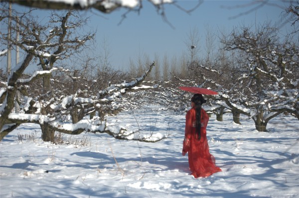 如此美丽的雪的世界里怎可少了婚纱摄影的浪漫情侣,红妆素裹,分外妖娆。