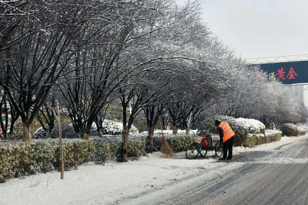 城市的“美容师”也早早地忙碌开了,为人们增添了一抹亮丽的风景。