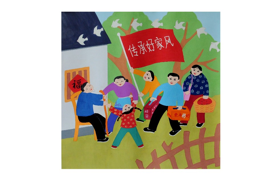 “你看,这幅画多漂亮,画的都是我们农村生产生活的场景,惟妙惟肖,栩栩如生,‘8种形式’倡导树新风过新年,通俗易懂,雅俗共赏!”2019年春节到了,本网特刊出一组青阳当地农民画家创作的“树新风 过新年”系列农民画,向广大网民拜年!