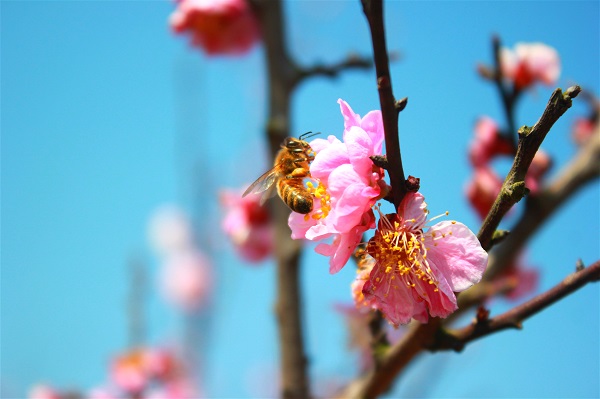 梅腮雪尽寒蕊在,纤蜂倏至忙采春。