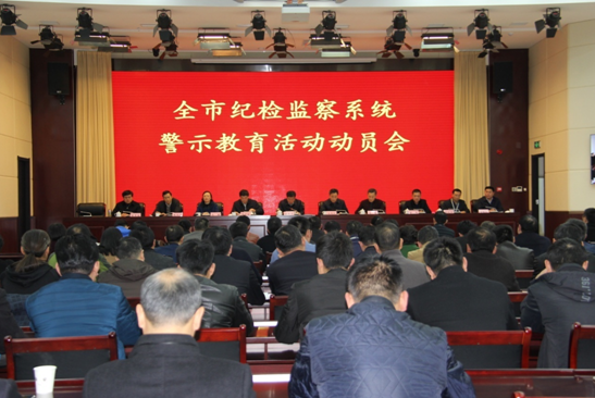 在扎实开展“讲严立”专题警示教育的基础上,以赵明伟等纪检监察干部违纪违法典型案例为镜鉴,在全市纪检监察系统开展专题警示教育活动,切实增强纪检监察干部的纪律规矩意识。图为全市纪检监察系统警示教育活动动员会。