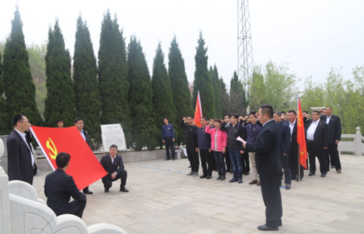充分发挥党支部的战斗堡垒作用和党员先锋模范作用,加强机关党建标准化建设,严格落实“三会一课”、领导干部双重组织生活、民主评议党员等制度。图为党日宣誓活动。