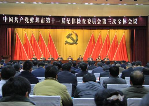 2018年2月9日,中国共产党蚌埠市第十一届纪律检查委员会第三次全体会议召开,拉开了2018年全面从严治党向纵深发展的序幕。图为会议现场图。