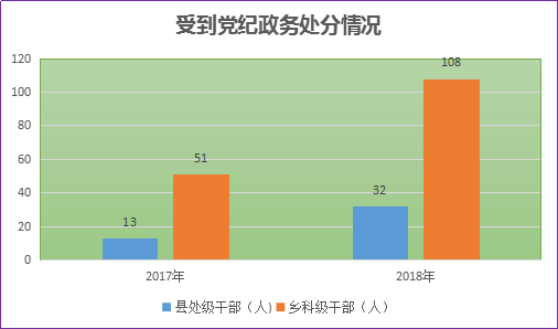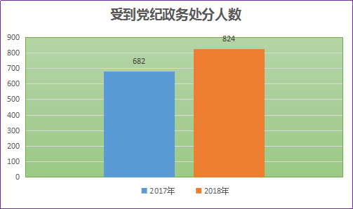 2018年,市纪委监委进一步加大违纪违法案件查处力度,依纪依法开展工作。全市纪检监察机关给予党纪政务处分824人,其中县处级干部32人,乡科级干部108人,移送司法机关17人,党纪政务处分人数同比上升20.9%。(马鞍山市纪委监委)