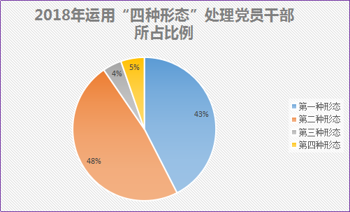 2018年,市纪委监委将“四种形态”充分运用到纪律监督、监察监督、派驻监督中,使纪律“带电”、监督“长牙”。全市纪检监察机关共运用“四种形态”处理1451人次,前两种形态占比超过90%,监督执纪由“惩治极少数”向“管住大多数”逐步拓展。