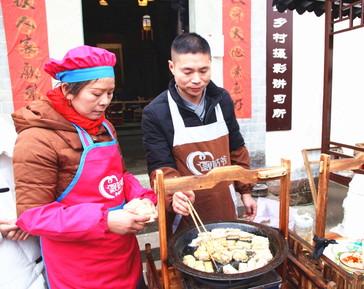 活动围绕“乡村振兴”主题,展现徽州极具特色的地方文化,下图为特色美食徽州毛豆腐。