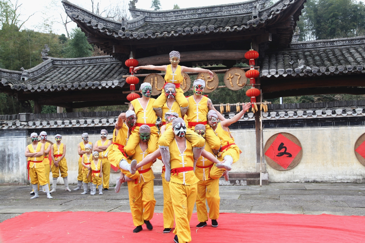 活动展演了舞草扎龙、叠罗汉等特色民俗,体现出徽州乡村振兴的新风貌,营造了喜迎新春的祥和、欢乐氛围。