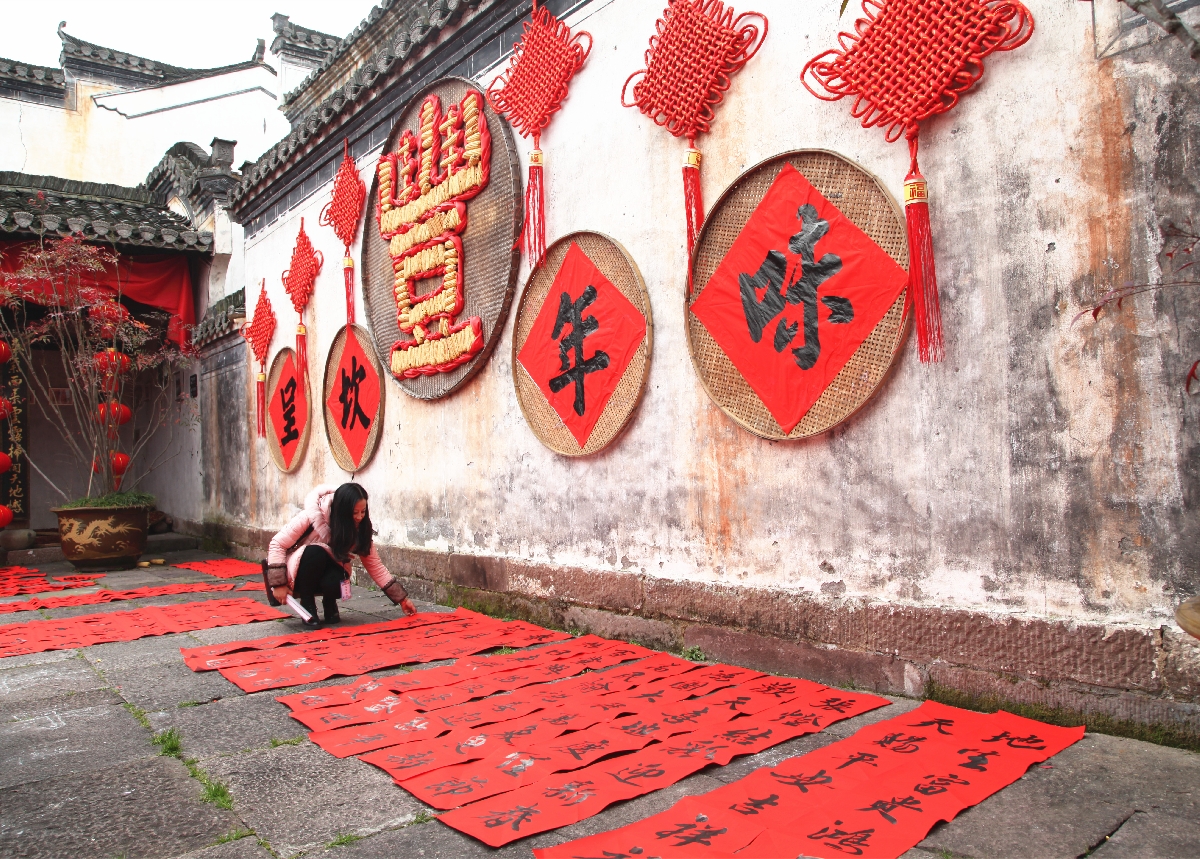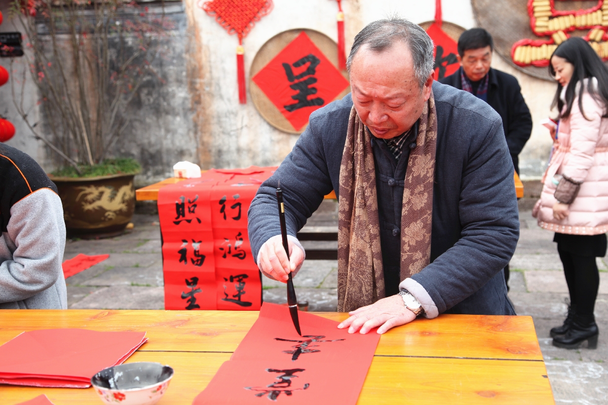 活动还展示了徽州撕纸等非遗文化,并组织书法爱好者为村民群众送春联。