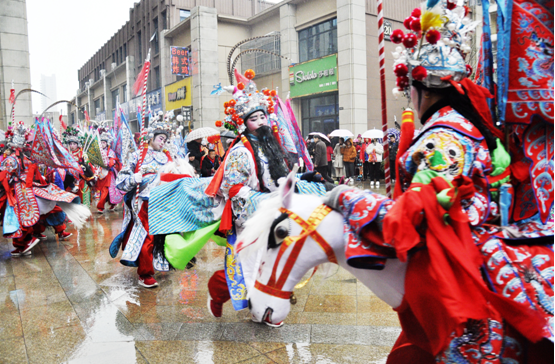 春节期间,芜湖县湾沚镇津元村女子马灯队来到县城敲锣打鼓表演马灯闹新春,吸引众多市民冒雨观看。女子马灯队行走在县城的大街小巷,不仅祈福国泰民安、五谷丰登,也为春节增添了浓浓的年味。