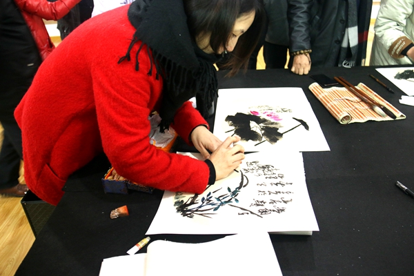 书画名家教零基础画“梅”“兰”“荷” 并盖章鼓励