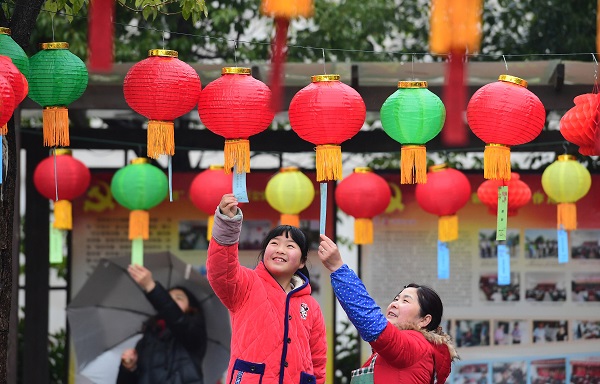 在义安区西联镇明塘文化艺术村,游客在欣赏多姿多彩的花灯,喜迎元宵佳节。据悉,以“寻找记忆中的年味”为主题的2019首届中国·犁桥大型灯会将持续至3月6日。(过仕宁摄)