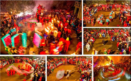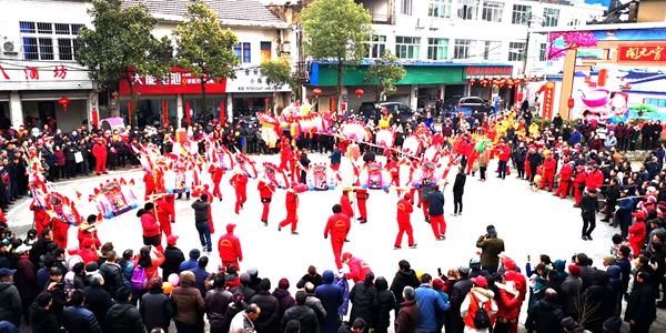 义安区顺安镇罗村舞起的龙灯吸引了众多村民驻足观看,场面壮观、声势浩大。(周久生摄)