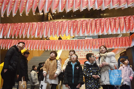 市民在铜陵市图书馆猜灯谜。元宵节将至,人们走出家门,赏灯猜谜,喜迎佳节。(过仕宁摄)
